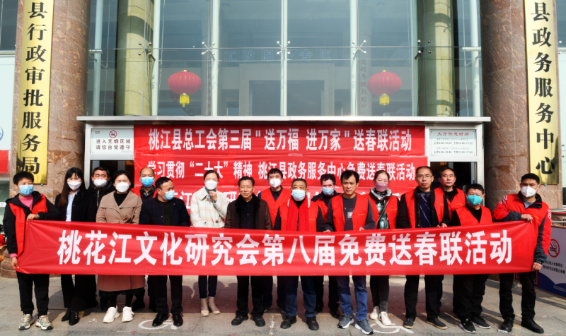 1月9日,桃江县总工会第三届“送万福 进万家”送春联活动暨桃花江文化研究会第八届免费送春联活动在桃江经开区启动。