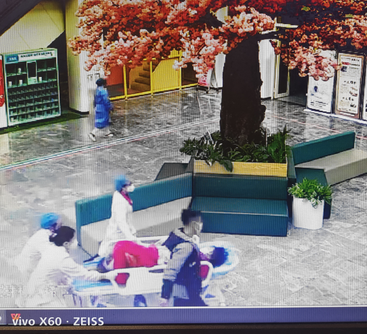 听到呼喊声,正在门诊大厅取药的儿保医生王旺立马赶过去,同时赶紧呼叫急诊科,通知产科与产房做好准备。急诊医生周晓兰跟护士刘贵华听到呼叫,马上拖着平车赶过去。看到孕妇已经躺在地上,周医生赶紧上前检查情况,发现胎头已经娩出,地面有大量血水,已经来不及将产妇送到产房,如不立即处理,新生儿和产妇都会有危险。于是周医生立即为产妇接生,不到两分钟,产妇顺利产下一名男婴。