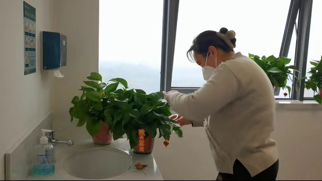 姚女士说,父亲住院期间,她每天看到医务人员十分忙碌,一名名患者在他们的救治下好转起来并康复出院,所以她在照料好父亲以及不影响医护工作的情况下,都会给摆放在病室周边的所有绿植除去黄叶,并浇水。一盆盆枯萎的绿植在她的精心照料下“起死回生”,她用最朴素的方式对医护人员表达最真诚的感谢。“这段时间,医护人员都好忙,很辛苦的,我想为她们做点什么。我想让她们在上班的时候,有个愉悦的心情。特别是这段时间,对我爸爸的照顾,我真的是很感谢她们。”谈及自己的这个举动,姚女士感激地说。