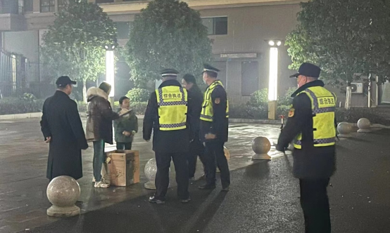 工作人员劝阻燃放烟花现场