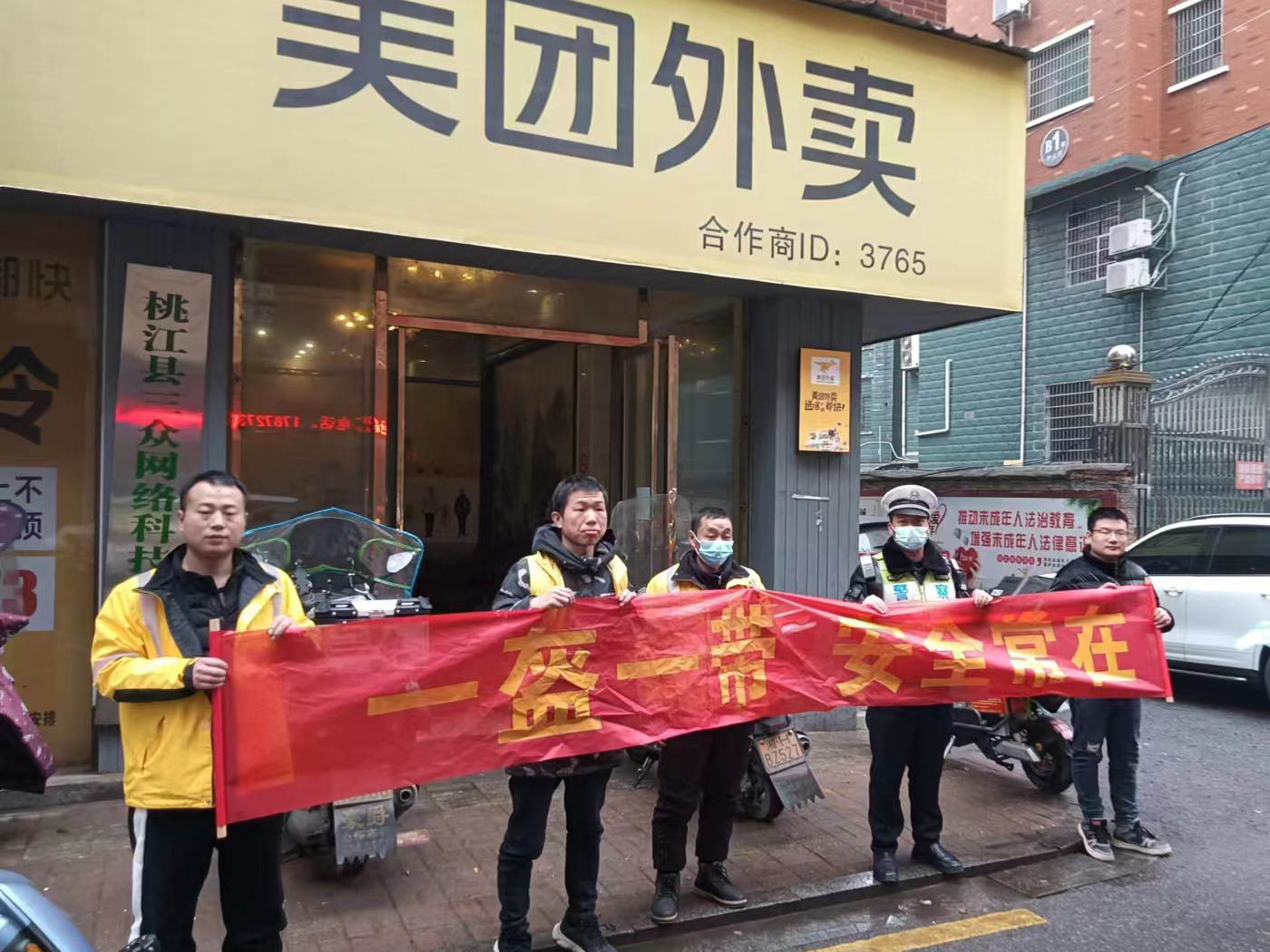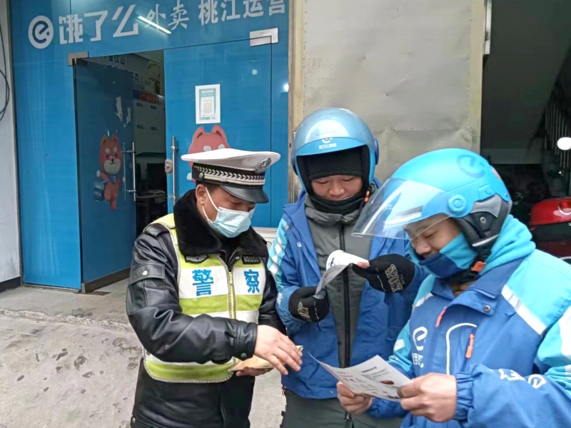 2月6日下午,桃江县公安局交通警察大队民警走进辖区“美团”“饿了么”外卖公司开展道路交通安全宣传教育。
