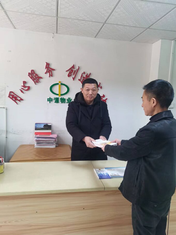 2月21日,县住建局上门向中源物业公司发送了《物业管理法规政策宣传册》《物业管理法规政策问答》等宣传资料。