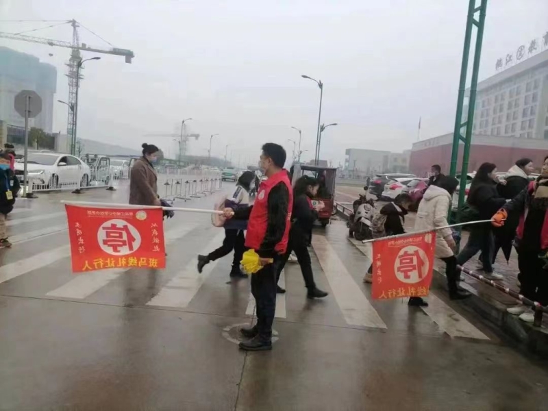 桃花江镇中心学校小学部:文明站台勤守护 爱心护航学子路