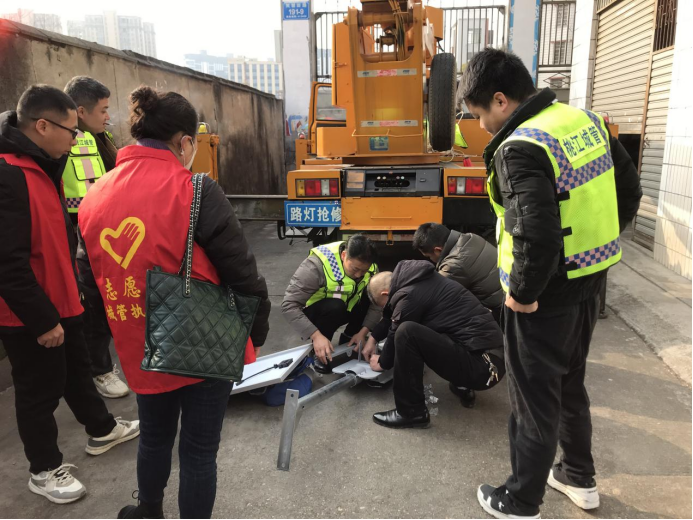 据了解,这个小巷人员密集,没有路灯,夜间一片漆黑,居民出行极为不便,存在安全隐患。了解到居民需安装路灯这一诉求后,路灯所党员、技术人员实地勘察多次走访,发现该巷子较为狭窄且未设置电杆电线,施工车辆无法正常进入作业,电源接入存在困难。经研究讨论,最终决定安装太阳能路灯并制定了详细的施工方案。“太阳能路灯环保节能,安装操作方便,能解决居民的实际需要。”