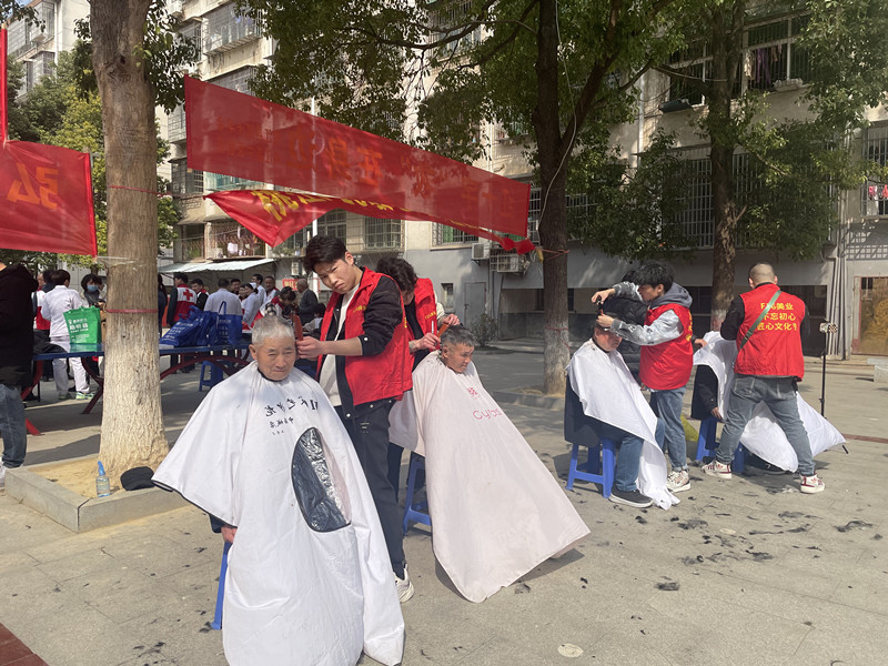 上午九点,志愿者们来到桃花江镇金凤社区,为社区居民义诊和免费理发,并利用教学模型,向他们演示心脏骤停、发生气道异物梗阻时的急救技能。今年8岁的吴雅楠小朋友在志愿者的指导下,学会了心脏骤停的急救措施。她说,如果以后碰上意外情况,她除了可以呼喊大人来帮忙,还可以用这些知识去抢救别人的生命。