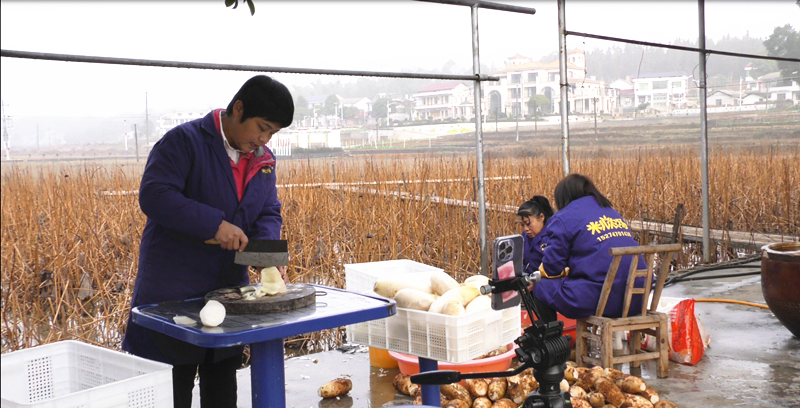见到郭美华时,她正在用手机录制农产品用来制作短视频。线上,郭美华借助电商和自媒体,拍摄了很多有关乡村生活和家乡土特产的视频上传到抖音、微信朋友圈等平台,不仅为在外乡友缓解了乡愁,更为农特产品拓宽了销售渠道。郭美华说,去年她做柿饼粽子的视频上了个热门,生意可以说是接单不赢,而且成功申报了县级非物质文化遗产。今年准备加大投入,为村民提供更多创收岗位。