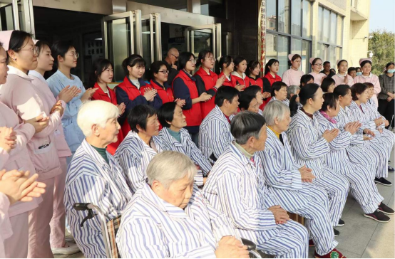 当天,医护人员携县职业中专学校手学生进入病房,为老人按摩、剪指甲、梳头、洗头、讲故事。病房里充满着欢声笑语,大家收获了满满的幸福与快乐。