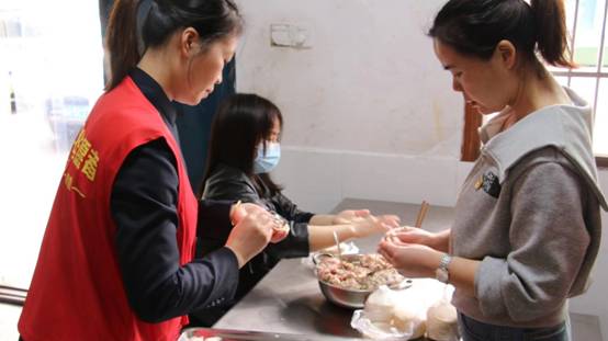 志愿者为孩子们包饺子