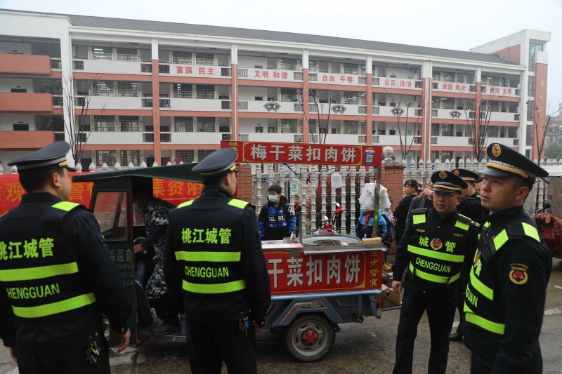 3月8日,县教育局联合桃花江镇政府、县城管执法局、县校车办共同开展校园周边市容环境整治行动,取缔校园周边占道经营、店外摆放、流动商贩等违规行为。