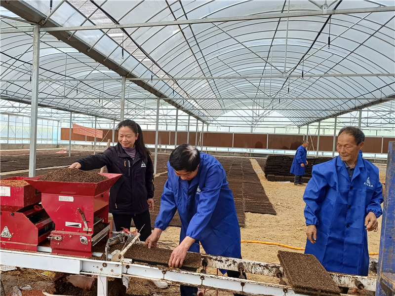 流水线旁,公司董事长刘世妹正在忙前忙后指导。她介绍,公司占地4500平方米的基地将为修山镇双季稻万亩示范片的6个种粮大户和村集体水稻生产合作社提供育秧服务,目前己签订集中育秧面积10000亩。