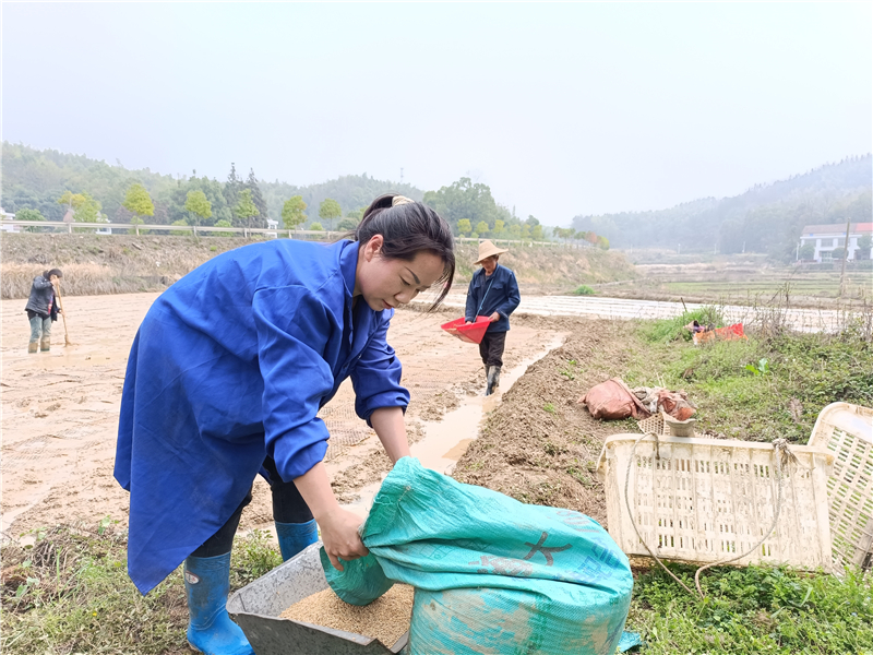 在修山镇通往桃江县城的舒牛公路上,修山镇莲盆嘴村的种粮大户贺丽姣开着汽车往邻近的桃花江镇罗家潭村快速驶去。贺丽姣在罗家潭村流转了800亩土地种水稻,3月11日这天,她请来做秧的帮工还在等着她送来午饭。