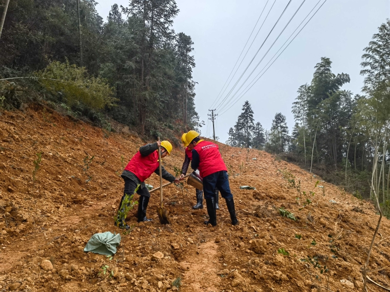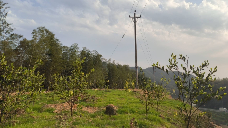 今年年初,马迹塘供电所在当地政府的支持配合下,通过无人机、测距仪对10千伏筑王线的树障安全隐患进行全面的排查,并制定出了详尽的树障砍伐计划。在政企双方的共同努力下,两个月的时间内成功协调并征得84户村民的支持与同意,共计砍伐约70亩土地树竹16000余棵,砍出了41米宽的通道,并为当地村民种植低矮的茶籽树苗4700余株。通过植被替换的方式打破以往传统单一的踩笋砍青模式,大大节约了人力物力,从源头切断了树竹生长过快过高给带来的线路安全隐患,同时能让村民收获经济效益上佳的油茶籽。