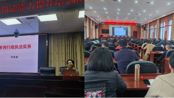 此次培训,由湖南省知识产权行政保护技术调查官、长沙市知识产权局执法处原处长尹承丽授课,针对知识产权执法职权、专利行政执法实务、专利纠纷受理等实际操作内容进行详细讲解。既有法律理论解析,又有实战技能分享,对参培人员有很好的指导性和启发性,有助于一线执法人员迅速熟练掌握法律法规、增强依法行政意识、提高综合执法水平。培训会历时3个小时,参培人员学习兴致高涨,在认真记录的同时,不断向授课老师提出疑难困惑的问题,学习讨论气氛热烈。培训后期,尹承丽结合典型案例及自身工作实际,分享了她的办案心得和体会,同志们听得意犹未尽,表示收获满满。