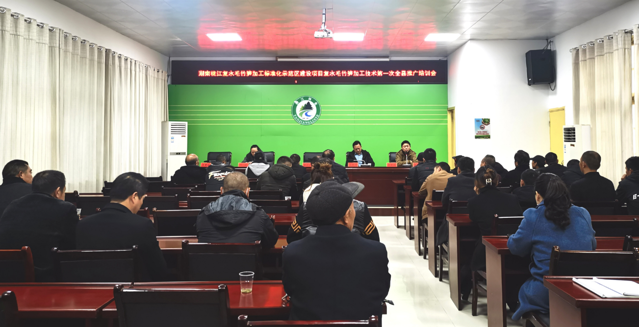 桃江县是中央财政林业科技推广示范资金项目的“大户”,目前已有3个项目落户桃江,由县林业科技推广站站长刘迪钦负责的湖南桃江复水毛竹笋加工标准化示范区建设项目,是对由桃江县牵头编制的《复水毛竹笋加工技术规程》省级地方标准的推广,项目实施后,企业彻底抛弃了作坊式生产工艺,改用标准化加工流程,劳动生产率和产品合格率将大大提高。该项目于2022年正式启动实施,2022年9月复水毛竹笋标准化加工生产线正式投产,实施单位桃江县竹缘林科开发有限公司当年即实现产值5100万元,比2021年增长240%,大大超过了项目实施预期目标,产品的检测合格率和优品率也进一步提升。为进一步在桃江县推广复水毛竹笋标准化加工技术,提高全县复水毛竹笋加工单位的标准化加工意识,提升标准化加工技术,组织召开了此次培训会。