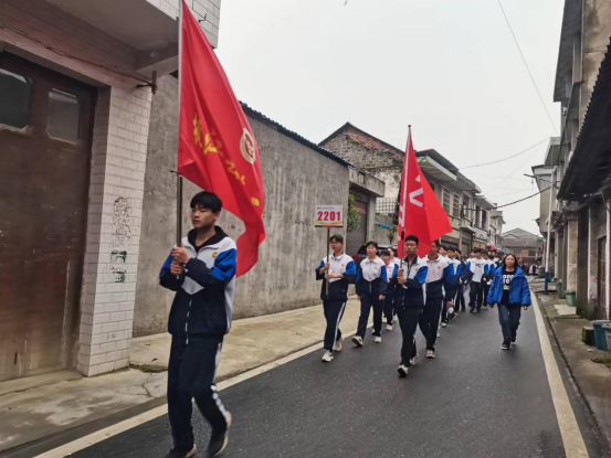4月5日上午,桃江二中举行“缅怀革命先烈,弘扬爱国主义精神”远足拉练活动。