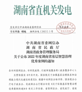 桃江县荣获2022年度湖南省基层智慧治理优秀案例
