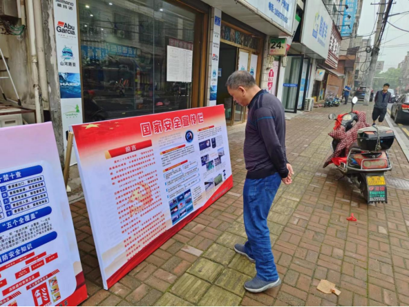 普法宣传志愿者先后来到资江路社区、富民社区和建设银行桃江支行,通过放置展板、悬挂横幅、发放宣传资料、现场宣讲答疑等多种形式,向群众讲解法律法规和相关知识,教育引导群众知晓维护国家安全的重要意义,树牢国家安全人人有责的安全意识,自觉做国家安全的模范遵守者和坚决捍卫者。