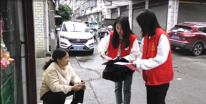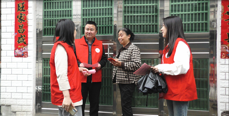4月14日下午,县委宣传部组织志愿者到桃花江镇资江路社区开展文明创建敲门行动。