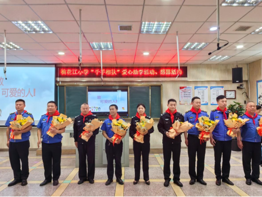 活动中,学校为24名家庭困难学生、留守儿童发放了助学金2万余元;学校少先队代表为县交警大队、县城管执法局工作人员送上鲜花,戴上红领巾,行队礼,以此感谢他们风里雨里全力保障校园周边道路交通安全所做的贡献。