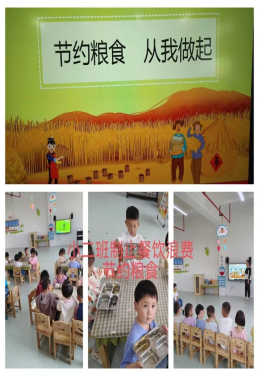 老师们在各班开展了班级教育活动,通过图片、视频和实物展示,让孩子们认识米饭、面条、包子等食物是日常常见的粮食,观看水稻、小麦等农作物的种植、管养、收获、加工视频,让孩子们知道每一粒粮食都来之不易,引导孩子们养成“吃多少打多少,光盘最光荣”的习惯。在4月份,全园光盘率达100%。