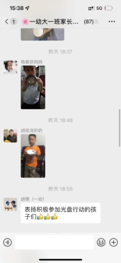 4月23日,桃花江镇第一中心幼儿园小一班老师收到浩浩小朋友家长的报喜信息:最近一段时间,浩浩吃饭很认真,天天“光盘”了!