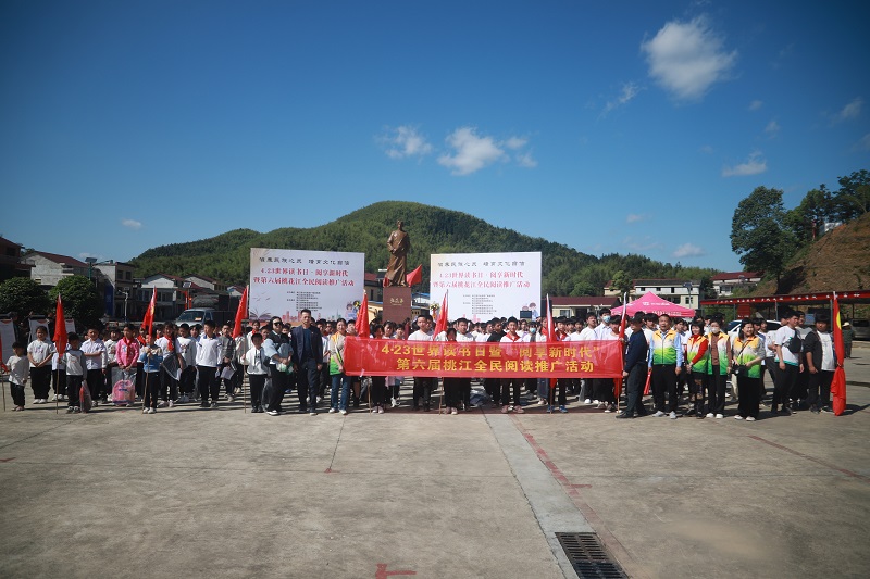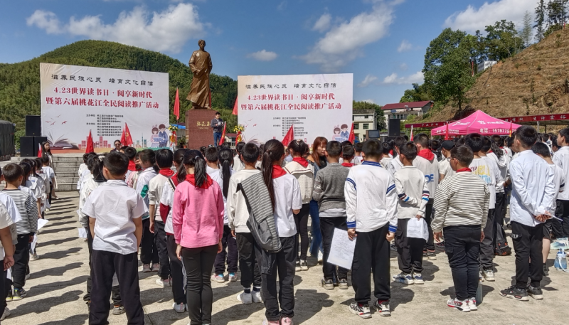 4月25日,由县文旅广体局、县政务服务中心、县库区移民事务中心主办,县图书馆承办的4.23世界读书日暨“阅享新时代”第六届桃江全民阅读推广活动在鸬鹚渡镇龙塘湾村张昆弟文化广场举行,板溪学校300余名师生参加活动。