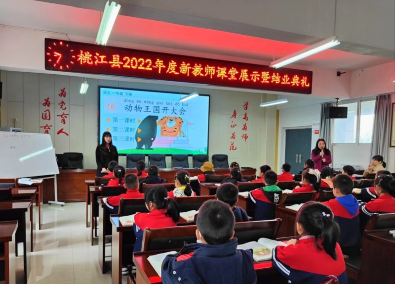 4月26日,桃江县2022年度新教师课堂展示暨结业典礼在桃花江镇中心学校小学部举行,30余名小学新教师顺利结业,正式加入桃江教育大家庭。
