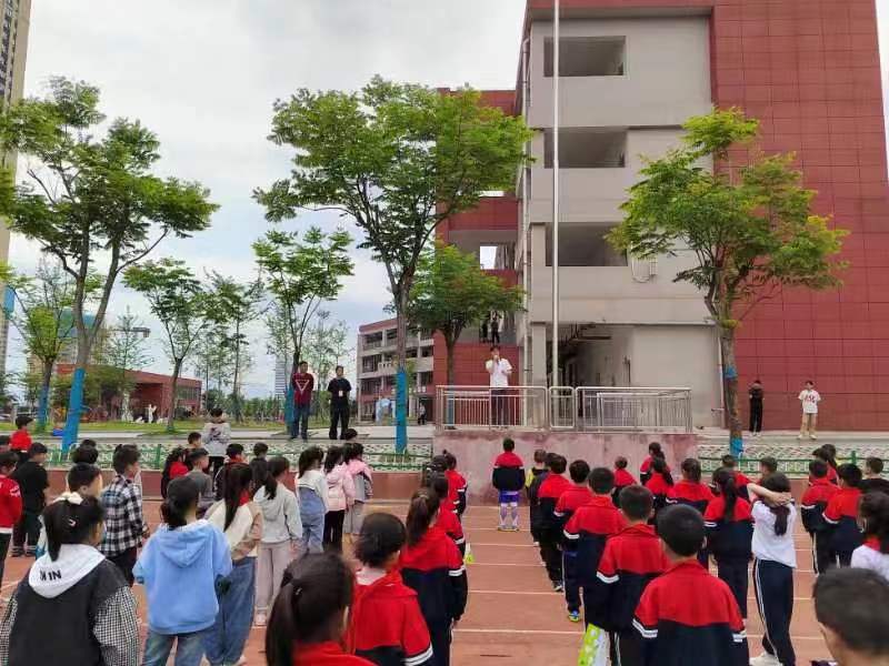 4月27日,湖南城市学院体育学院“橙心护童”三下乡社会实践团来到桃花江镇中心学校小学部开展防溺水应急演练活动。