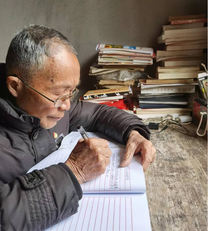 周爹爱学习,爱宣讲党的政策理论,远近闻名。走进他的卧室,能感受到扑面而来的满室书香。时事政治、哲学历史、学习笔记整齐有序地摆放在书桌上。学习党的理论、感悟党的最新精神、收看时事新闻、撰写学习笔记……是他每天雷打不动的“功课”。一本本学习笔记承载着周履中这位52年党龄的共产党员对信仰的忠诚与执着。用一笔一画将党的思想入脑入心,牢牢把握着习近平新时代中国特色社会主义思想的世界观和方法论。