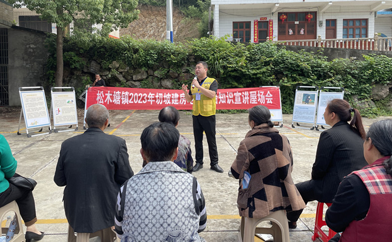在松木塘镇南河冲村其跃湾组,技术人员组织当地村民召开了切坡建房地灾防治知识宣讲屋场会,播放了地质灾害警示片《忏悔》,向群众讲解地质灾害的类型和危害、防范措施和应急处置方法等。随后, 技术人员还组织与会村民进行了应急疏散演练。“这次宣传演练活动不仅让我们更加重视地质灾害防治工作,还增强了我们的自我保护能力。”南河冲村党总支书记文杰表示。