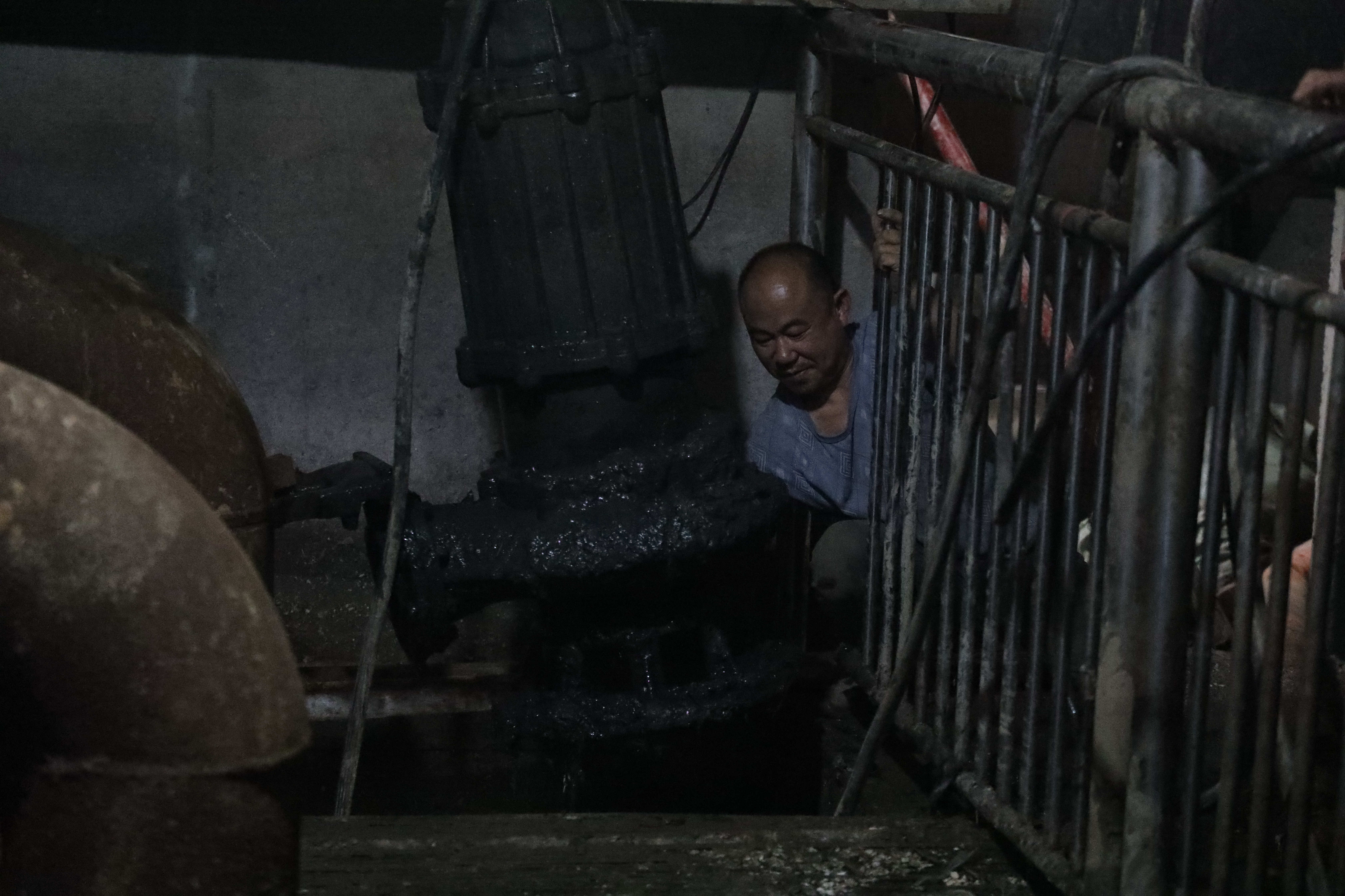在团山污水提升泵站内,市政设施站的3名工友在低矮狭小、具有强烈恶臭味的污泥水中作业。站外,专业污水运输车每天以4至5车的运输量配合整体的维修保养工作。该站修建于2009年,采用两用一备潜水排污泵,主要负责城区獭溪河以东的雨水污水提升、输送,部分生活污水经该站输送到鲇鱼港泵站,后集中送到县污水处理厂进行净化处理。