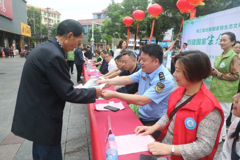6月5日是世界环境日,今年的主题是“建设人与自然和谐共生的现代化”。当天上午,县人大、桃江县新时代文明实践中心、市生态环境局桃江分局、县检察院、桃江县环保志愿者协会等单位和社会团体在新龙超市前坪开展“世界环境日”生态文明示范县建设宣传活动。