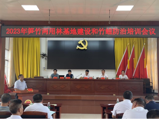 5月31日至6月14日,由桃江县科技专家服务团和县林业局、县竹产业中心、县竹产业协会联合组织的2023年笋竹两用林基地建设和竹蝗防治培训会陆续在松木塘、桃花江、三堂街和马迹塘四个乡镇召开。全县各乡镇竹旅文体康产业联络员和笋竹两用林基地建设者共200余人参会。