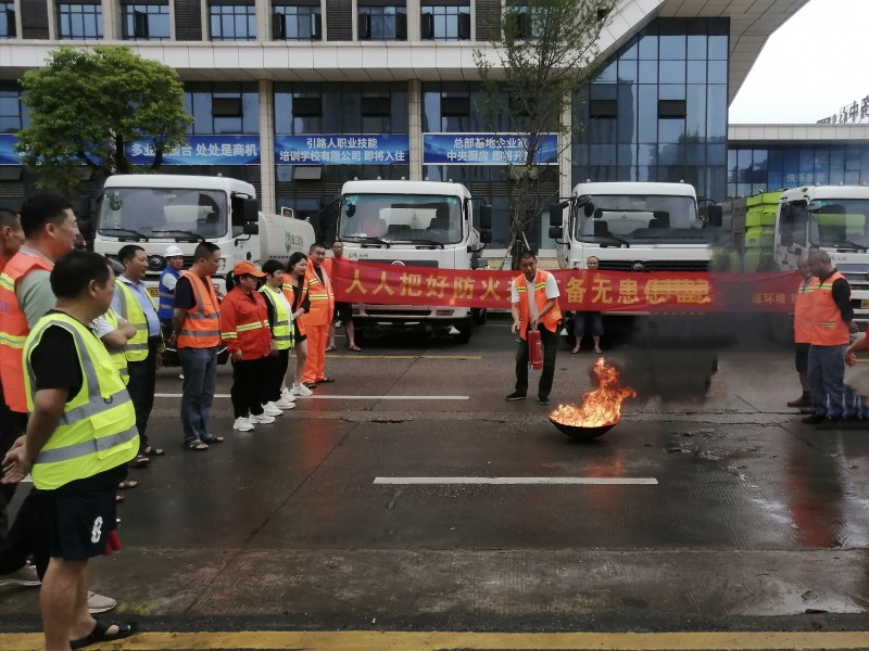 活动中,该中心传达学习了《安全生产法》和《安全生产十五条措施》,在中心各处悬挂安全生产宣传横幅10条,张贴宣传海报6张,利用LED显示屏定期滚动播放宣传标语,通过形式多样的宣传,提高环卫从业人员安全生产意识;组织益环集团、宏源环境、美中环境三家清扫保洁公司开展道路交通救援和消防应急演练,由各公司安排救援小分队现场演示应急处理、伤员救治,以及灭火器的使用方法和步骤,并指导全体参加活动的人员进行灭火演练;组织工作人员对垃圾填埋场、环卫公租房、环卫作业车辆、化学药剂保管库用电安全、作业安全、防火措施等方面进行了认真排查,针对垃圾填埋场露天野塘和药剂调节池制作救生杆8根、宣传提示牌4块。