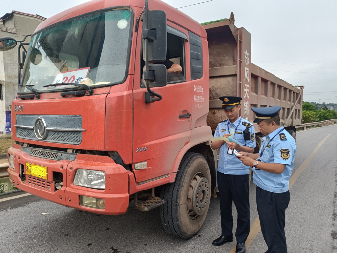 “师傅,请出示本趟运输的称重磅单。”6月19日上午,县交通运输综合行政执法大队九中队执法人员在S223灰山港镇大坝桥路口抽查长益石料厂运输车辆装载情况。现场抽查的3台石料运输车辆均标载出厂,以前那种大货车“堆山纳海,呼啸而过,无人管理”乱象已不复存在。