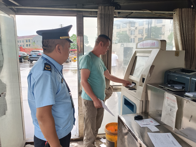 随后,九中队执法人员又来到南方水泥公司检查。公司门岗亭负责人介绍道:“按照交通部门的要求,所有进出厂车辆都需进行称重检测,标载车辆由驾驶员在自助机上自动打印磅单;超载车辆需卸载后重新进行称重检测,符合装载要求后驾驶员再在自助机上自动打印磅单。”