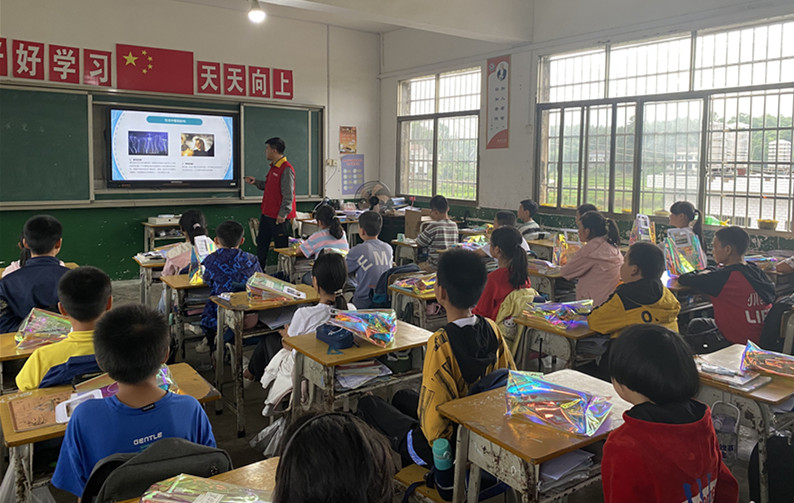 6月20日上午,国网桃江县供电公司东方红(周顺)共产党员服务队来到浮邱山乡会龙小学,开展“村网共建·绿伞行动”安全用电进校园主题活动,将“安全”知识送进校园。