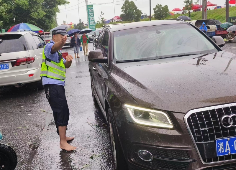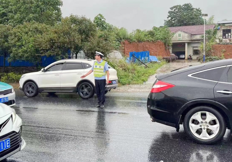 连日来,桃江县普降大雨,防汛形势陡然严峻。为确保广大人民群众节日期间出行安全,桃江县公安局交通警察大队近200余名民、辅警以“群众过节,交警过关”的高度政治自觉,始终坚守在护畅保安的路面一线。