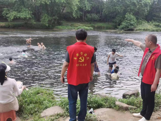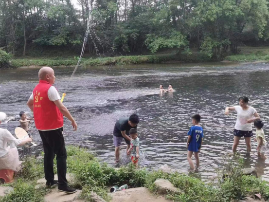 县自然资源局志愿者在獭溪河劝阻市民游泳 肖勇华 摄