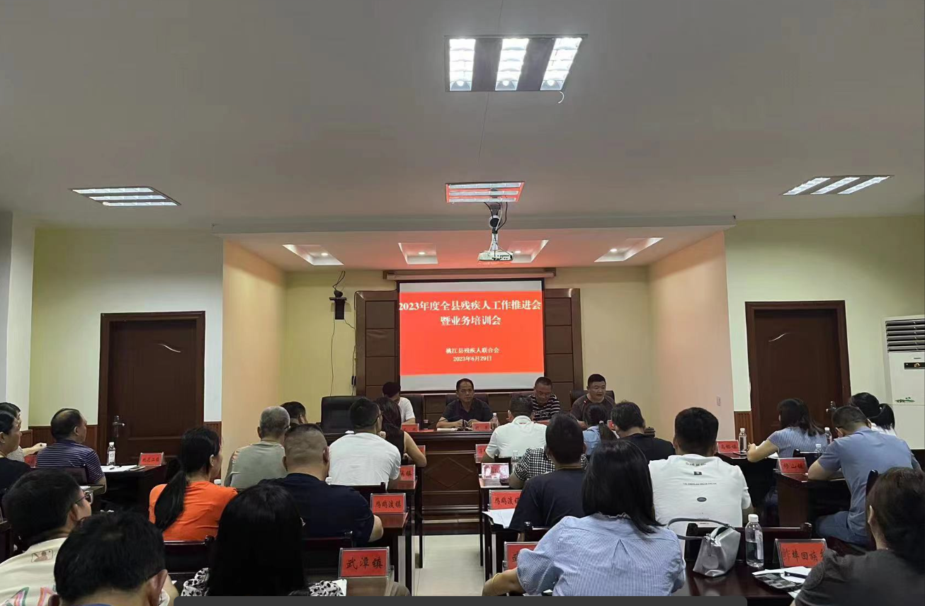 6月29日下午,全县残疾人工作推进会塈业务培训会召开。县残联班子成员、机关全体干职工,各乡镇残联分管负责人、理事长、专干参加会议。