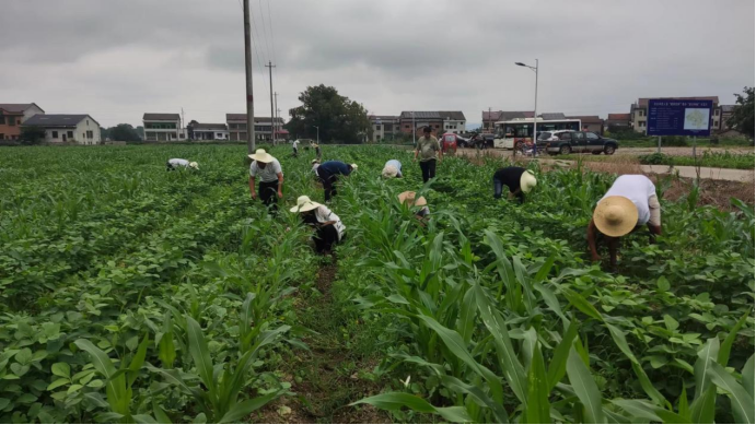 上午8点,支部组织全体党员进行了集中学习,该局党组书记、局长蔡重阳以“大兴调查研究之风”为题,给大家上了一堂生动深刻的专题党课。随后,全体党员来到牛田镇观庄村大豆玉米带状复合种植示范片,开展田间除草、技术指导等助农活动。党员们一个个挽起裤腿来到田间,把一块块大豆和玉米田间的杂草清除干净,以实际行动为党旗增色。