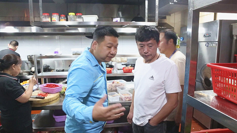 在县城一家饭店,联合检查组走进厨房逐一认真检查,发现该店存在同一空间天然气、液化气共用,没有足量配置灭火器等问题,就检查中发生的问题,检查人员与饭店老板进行详细说明,并要求其在2个工作日内整改完毕,再进行复检。