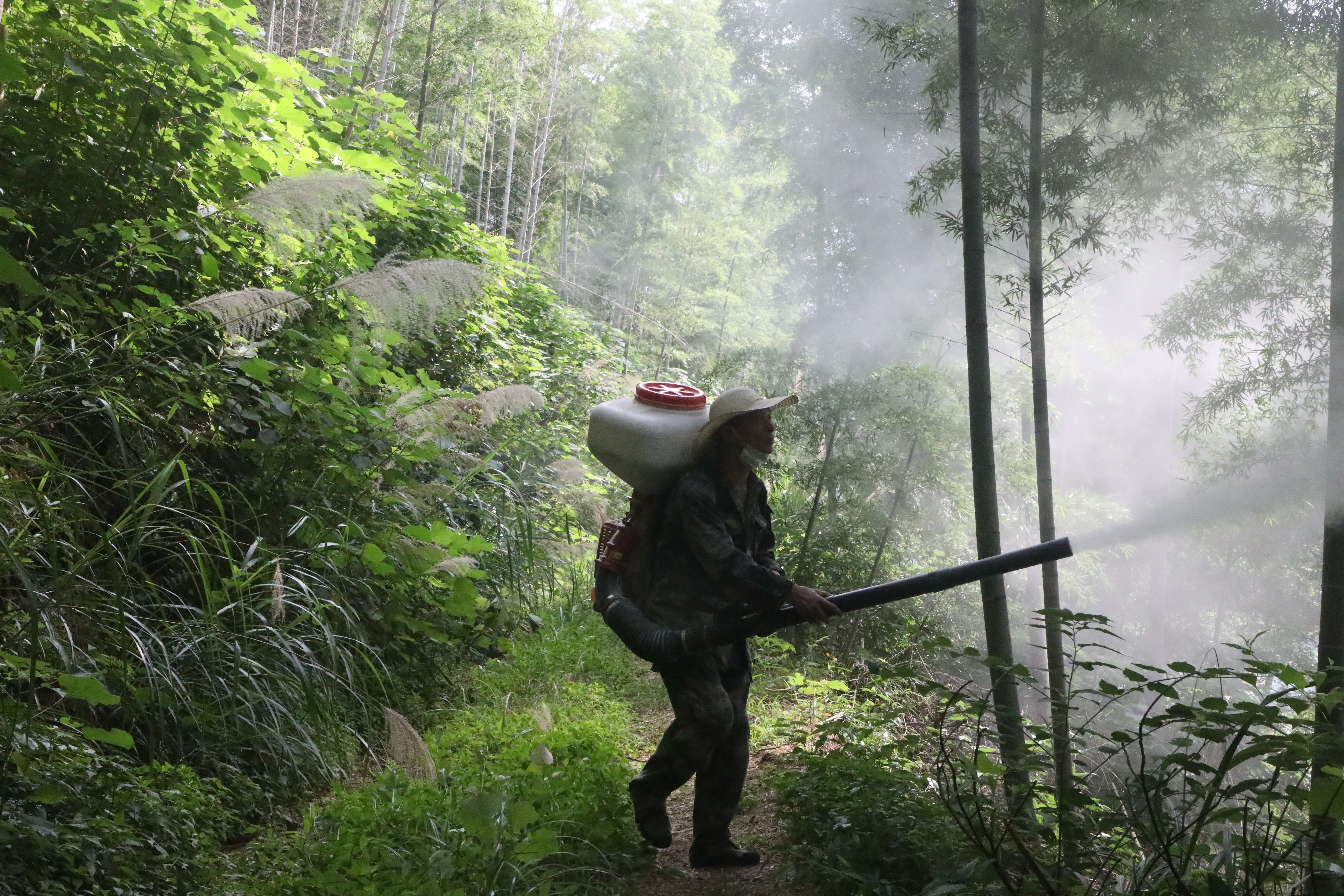 林业工人在松木塘镇苍瑕塅村开展竹蝗防治作业 陈明 摄