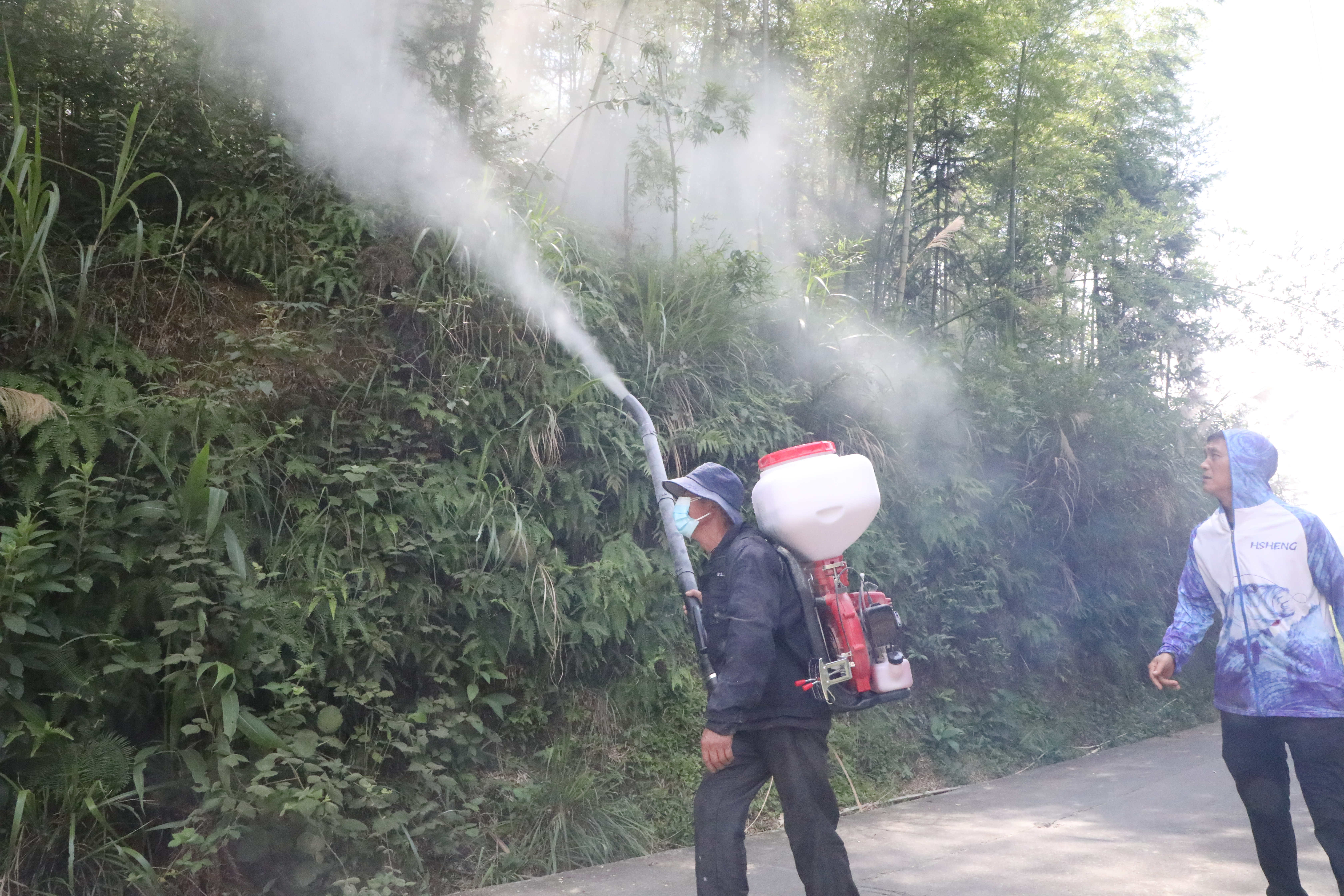 林业工人在灰山港镇克上冲村开展竹蝗防治作业 陈明 摄