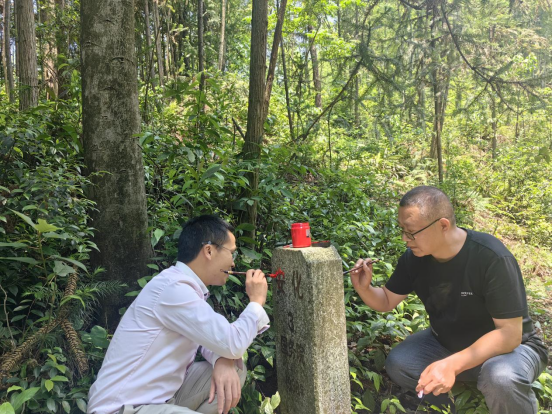 工作人员通过实地走访发现,相邻县界桩没有移位,边界线相关地物、地貌无明显变化,边界线明晰,没有发现任何边界纠纷和不稳定因素。同时,工作人员加强了对界桩的管理和维护,清除了界桩周围的杂草及遮挡物,用红漆对界桩上的文字进行了描绘并拍照留存,并对乡镇基层干部、界桩维护员等进行现场培训。