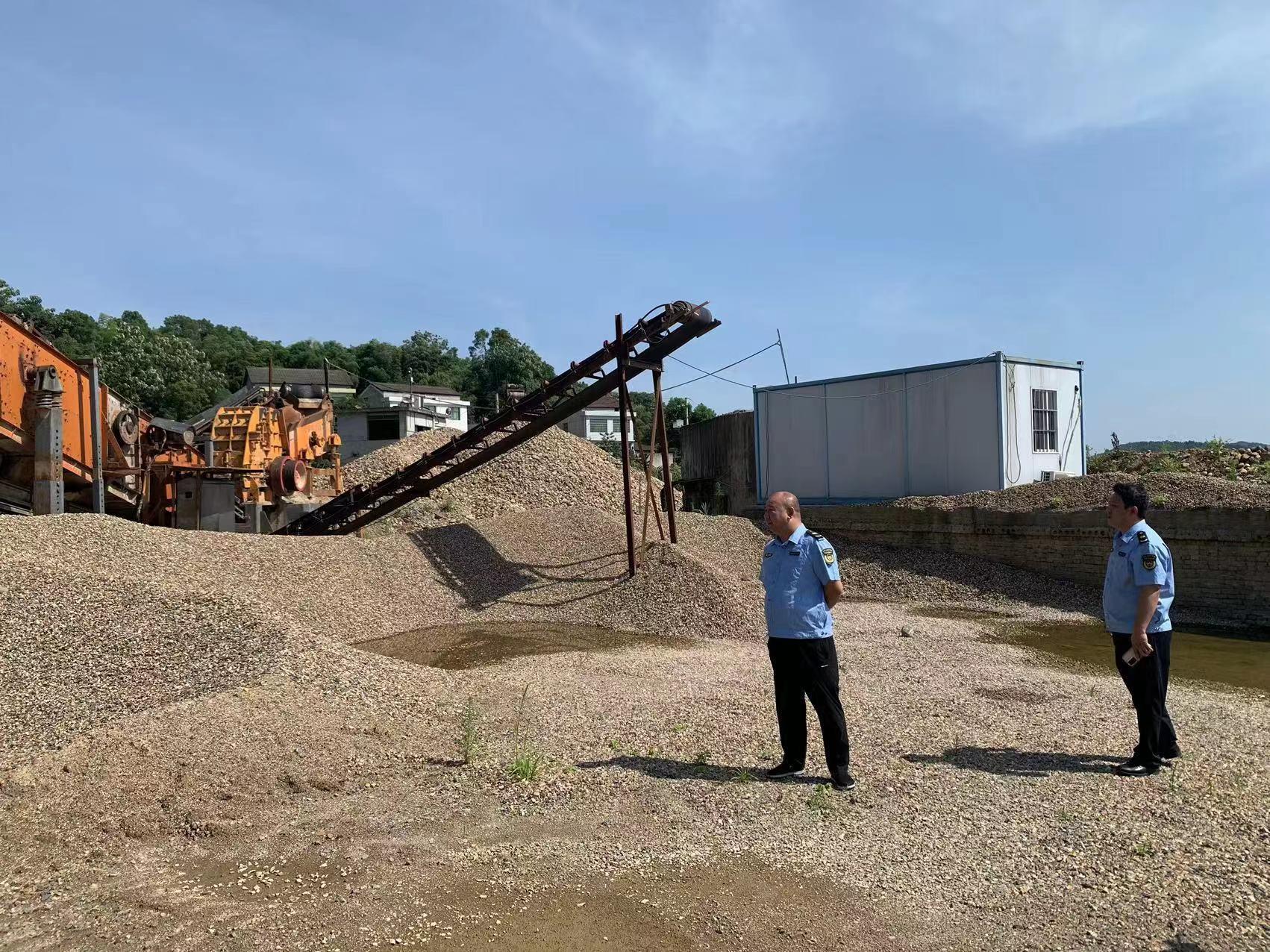 执法人员检查吴立兵砂场 陈耀新 摄