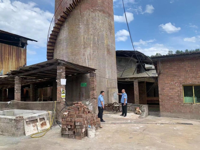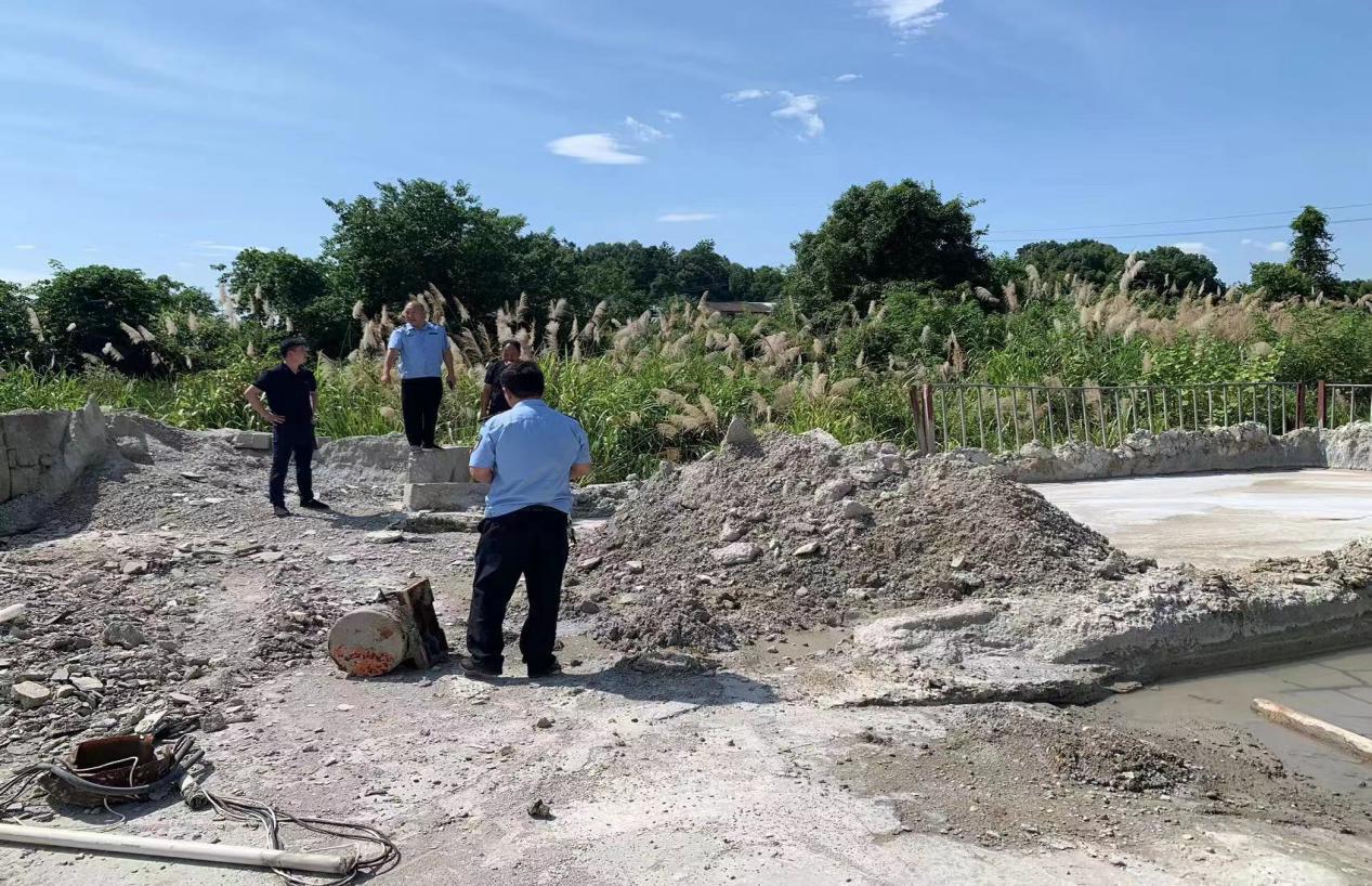 执法人员检查伍家洲砖厂 陈耀新 摄