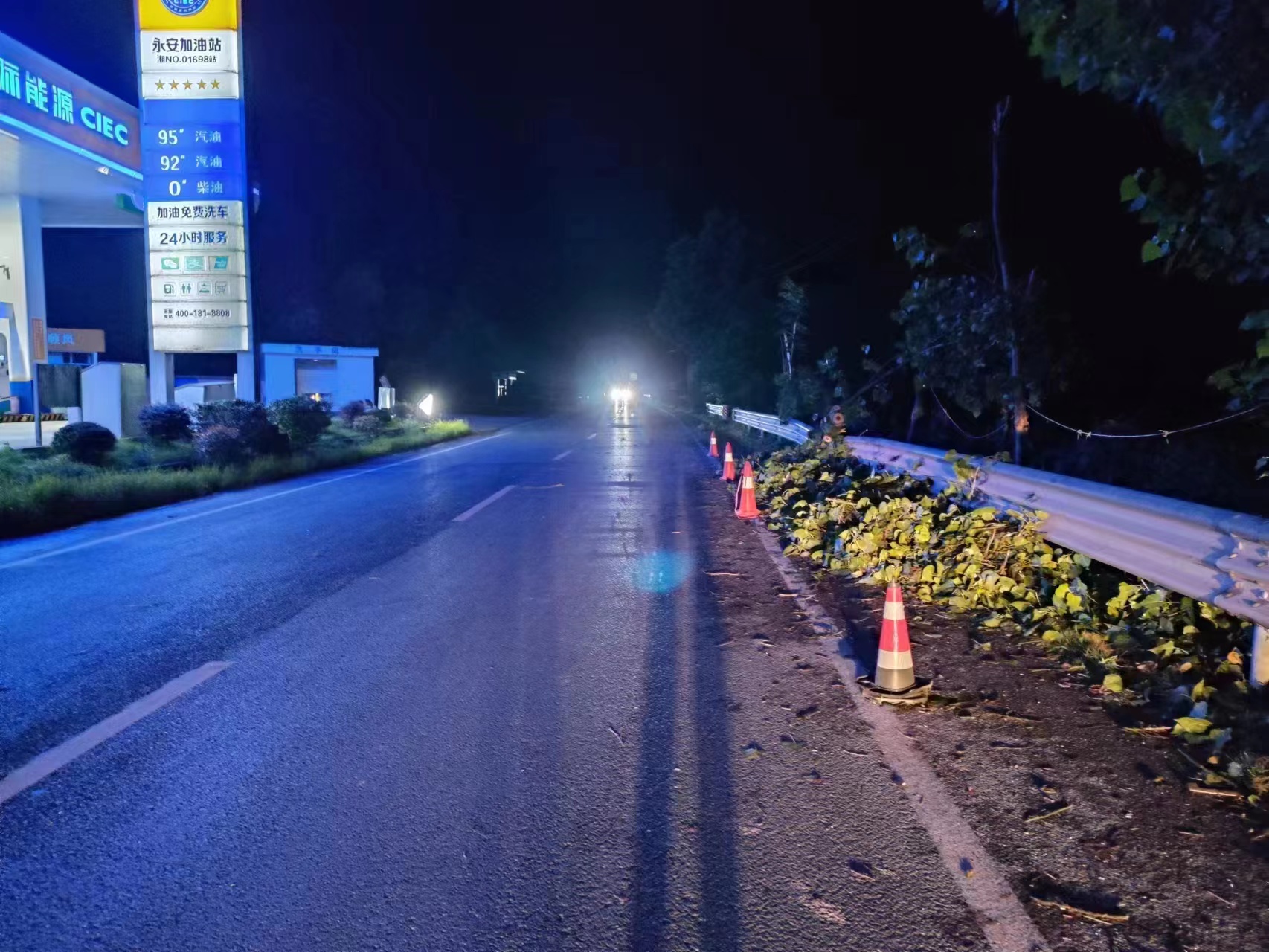 收到热心群众的险情报告后,县公路建设养护中心立即启动应急预案。下午5点20分左右,待强降雨过后,安排工作人员赶赴现场,在事发地两侧设置警示标志,提醒过往车辆减速慢行,并组织机械设备和车辆对倒伏的树木进行切割、清理。