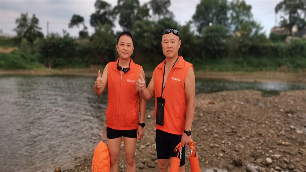 县水上应急义务救援队队员陶建华(右)与刘壮平合影 胡卫红 摄