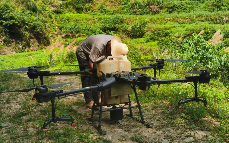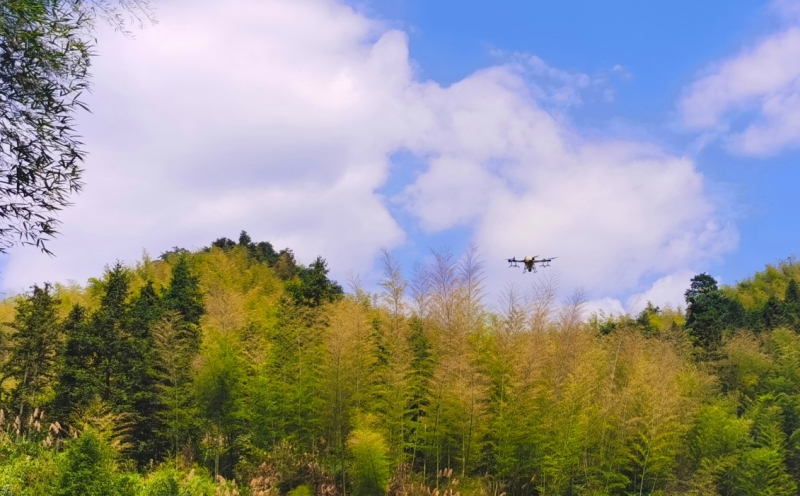连日来,在马迹塘镇南山村,当地村委使用无人机灭杀蝗虫。相比地面人工喷粉施药作业,无人机安装有高清摄像头,可以从空中发现受灾的竹林,从而实现更精准施药作业。同时,无人机一次加药40余斤,1天作业面积可达200余亩,相比地面人工作业效率提高4-5倍。“有些蝗虫分布在没有林道的竹林里,从地面根本没办法打药,有了无人机,效率更高、效果更好、费用更低”南山村村支书肖忠介绍道。